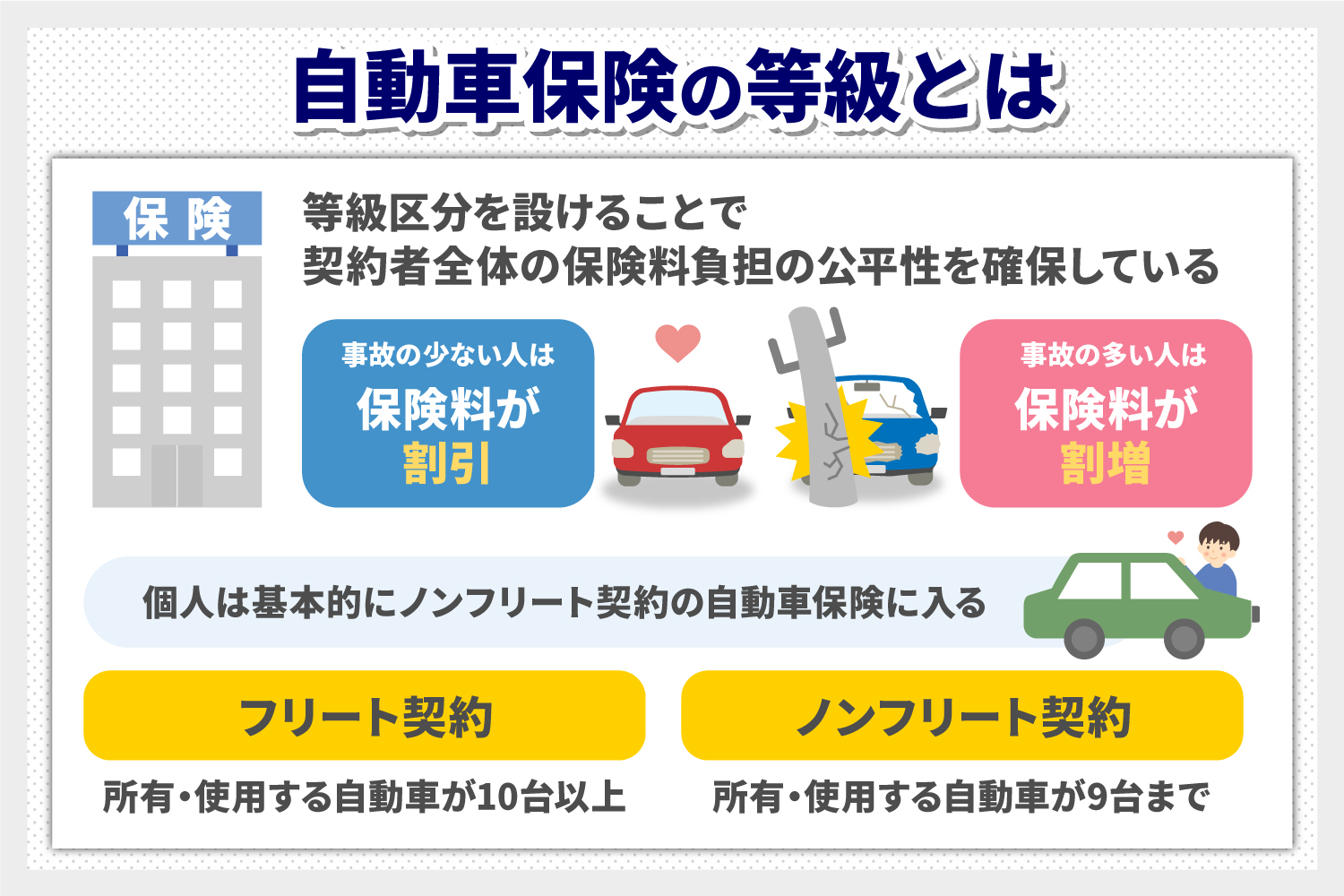 自動車保険では、事故リスクに応じた等級区分により、保険料の割引・割増率が決まります。一般的に等級は1~20段階あり、等級数が20に近いほど割引率が大きく...